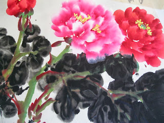 紅艷雙嬌 (18cm x 25cm )扇面工筆画